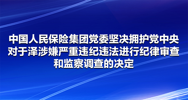 中国人民保险集团党委坚决拥护党中央对于泽涉嫌严重违纪违法进行纪律审查和监察调查的决定