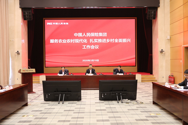 2026年3月10日上午,中国人民保险集团召开“服务农业农村现代化 扎实推进乡村全面振兴工作会议”。集团公司党委副书记、总裁赵鹏出席会议并讲话,农业农村部区域协作促进司司长李富君、二级巡视员周晓云和中国人民银行机关党委副书记、机关工会主席侯雅丽应邀出席会议,人保财险党委委员、副总裁胡伟主持会议。